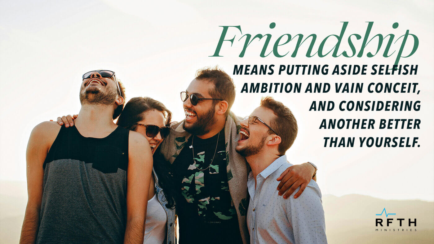 The essence of friendship means that we want the best for another person. It means we are willing to put aside our selfish ambition and vain conceit and consider another better than ourselves. It means we do not feel threatened by the advancement of another. It means we refuse to use other people for our own gain. This kind of friendship is rare – so rare, in fact, that it only comes through faith.